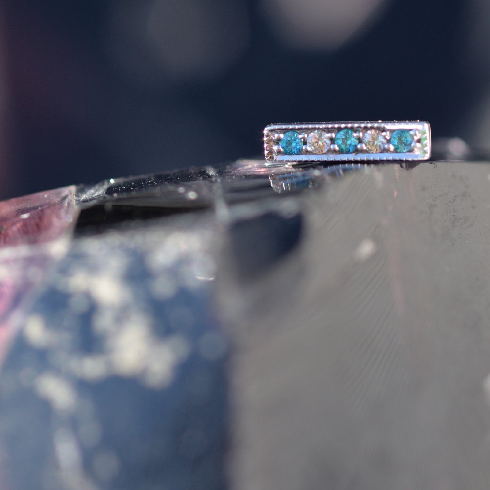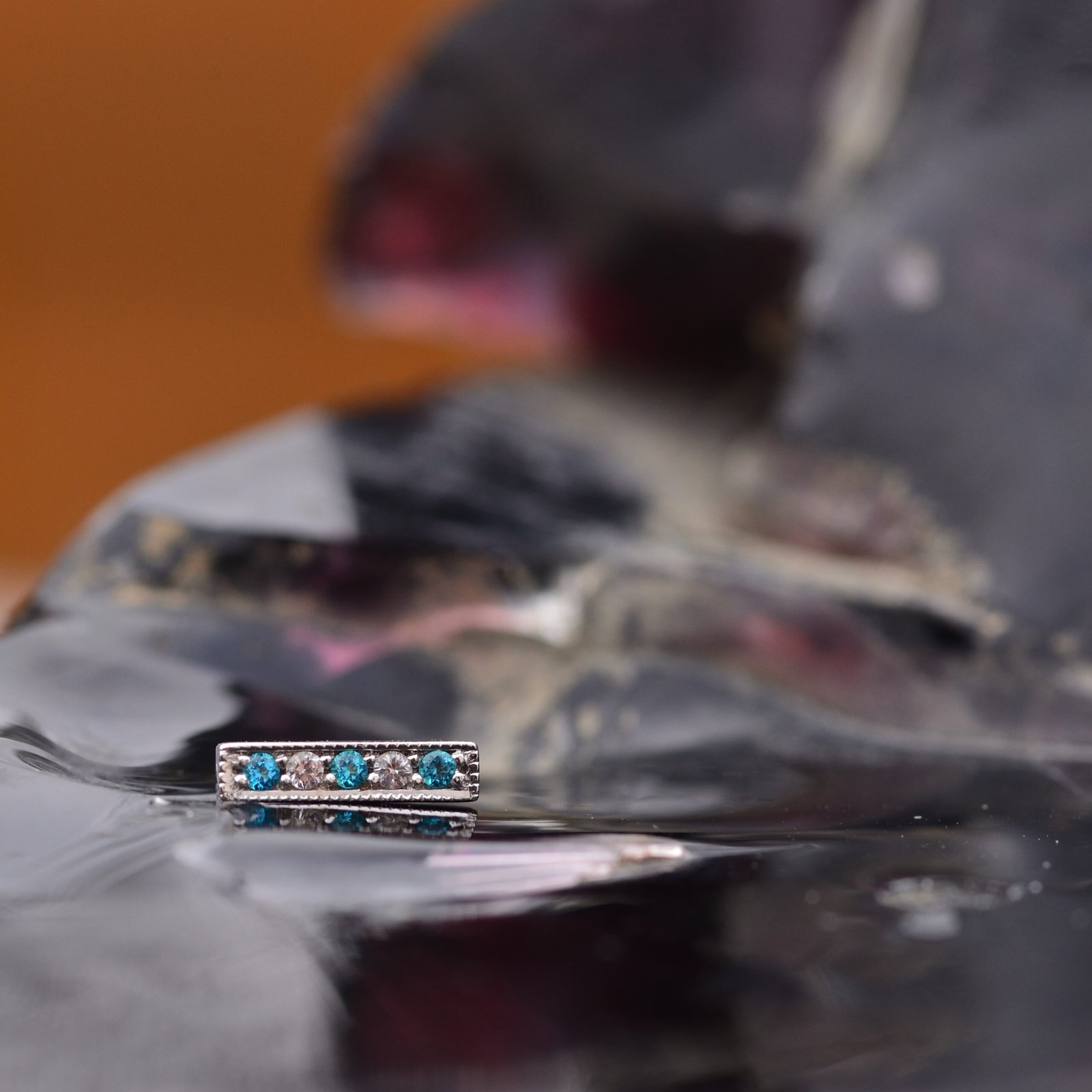 14K Threadless 5 gem Millgrain strip White Gold Paraiba Topaz and White Sapphire