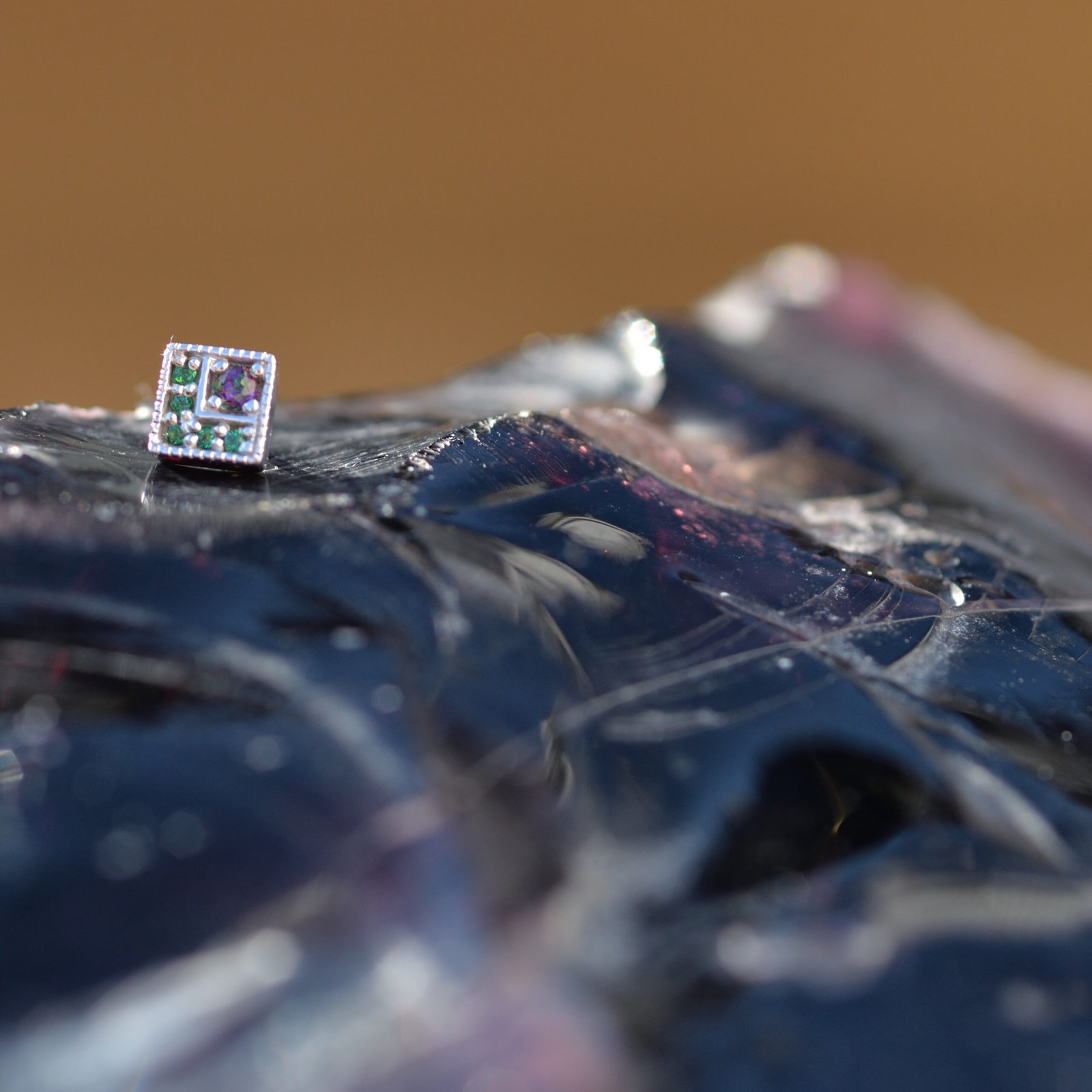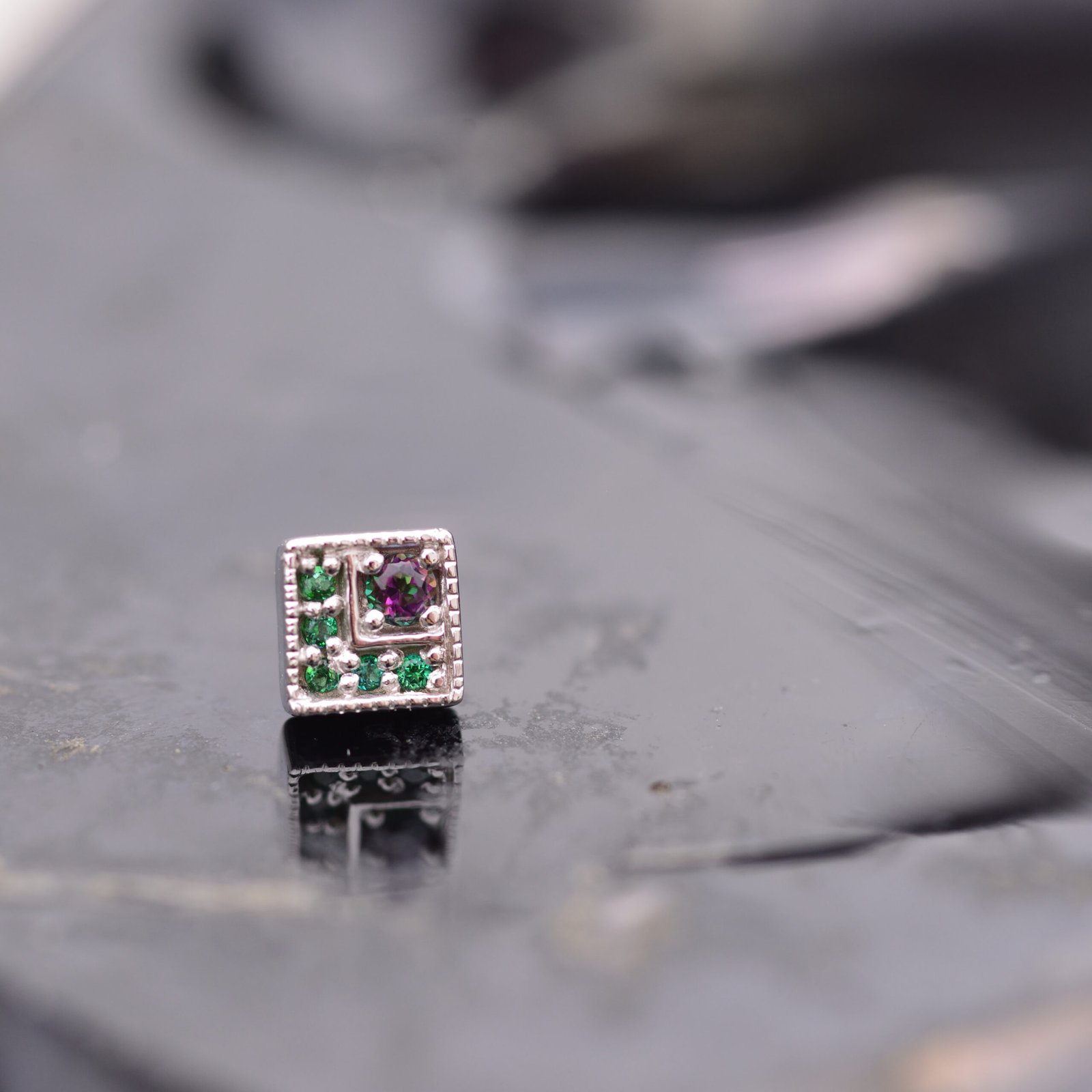 BVLA Solid 14k White Gold Endymion Square threadless end 5mm square with 2mm Genuine Mystic Topaz and accented with Genuine Rainforest Topaz 1mm gems