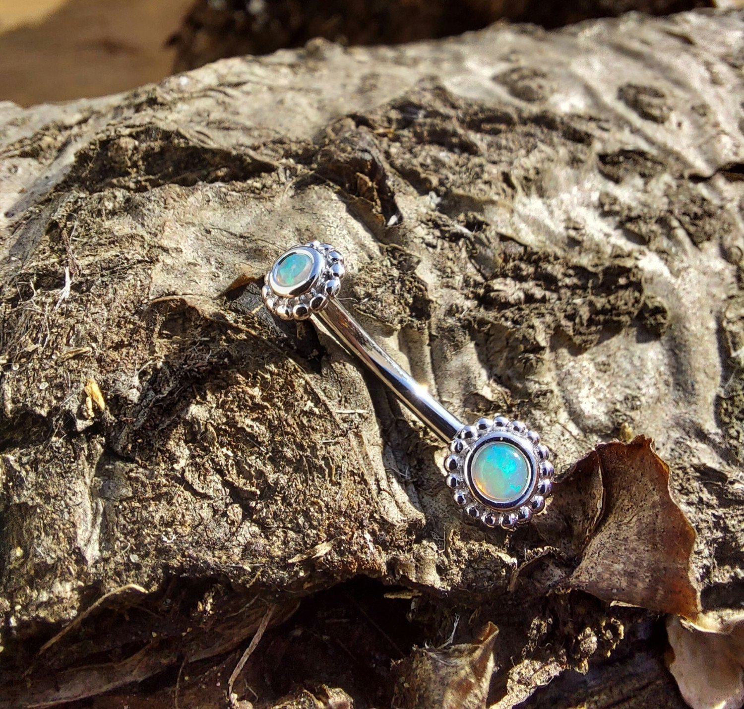 BVLA Choctaw Jewel Navel Curve 14g 7/16 Solid White Gold Genuine AAA White Opal