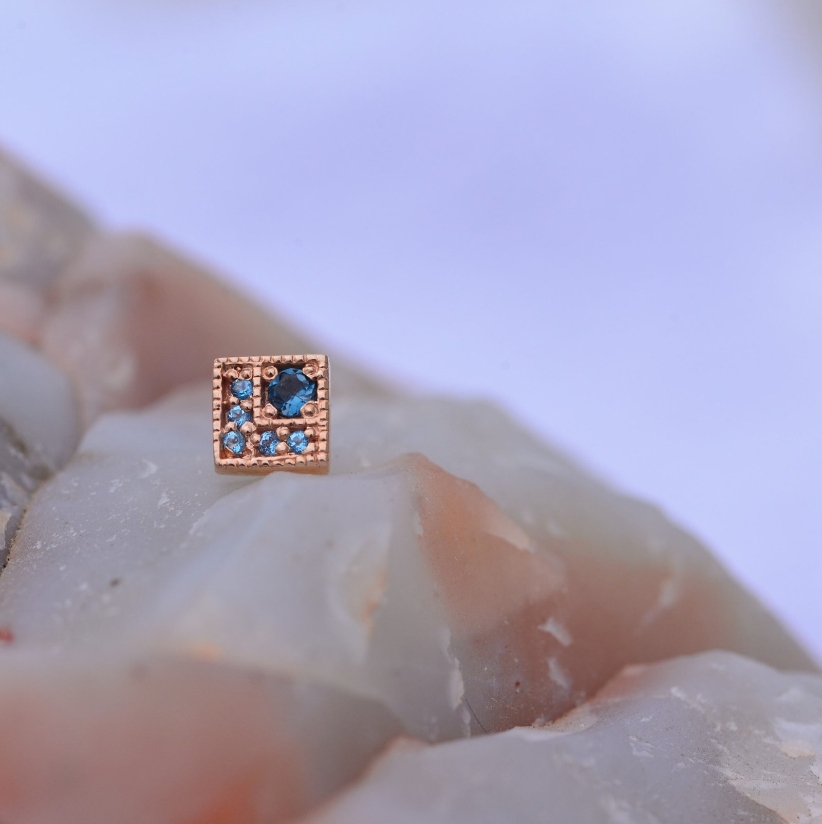 BVLA Solid 14k Rose Gold Endymion Square threadless end 5mm square with 2mm Genuine London Blue Topaz and accented with Genuine Ice Blue Topaz 1mm gems