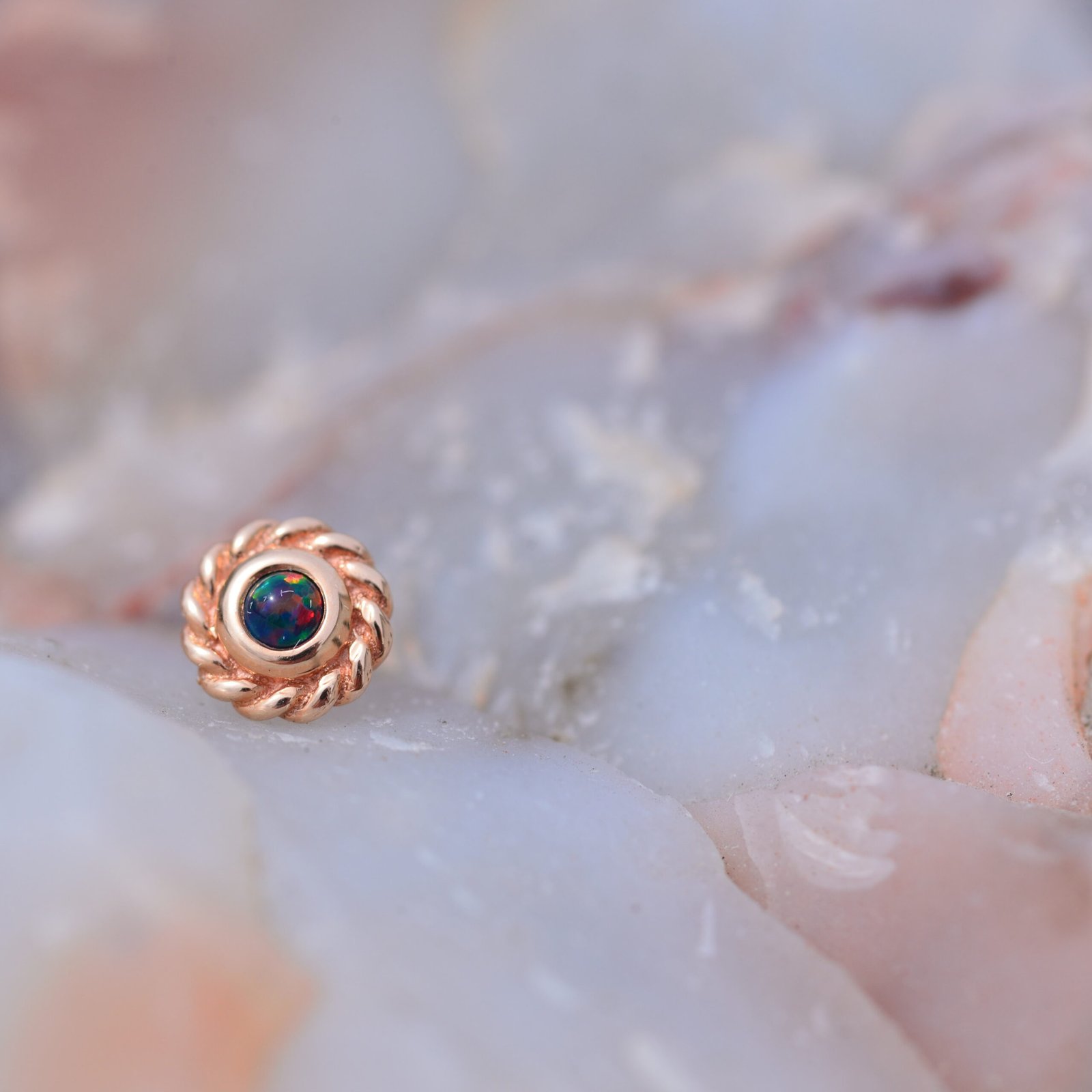 Threadless 14k Rose Gold Choctaw with Synthetic Black Opal 4.5mm with 2mm gem.