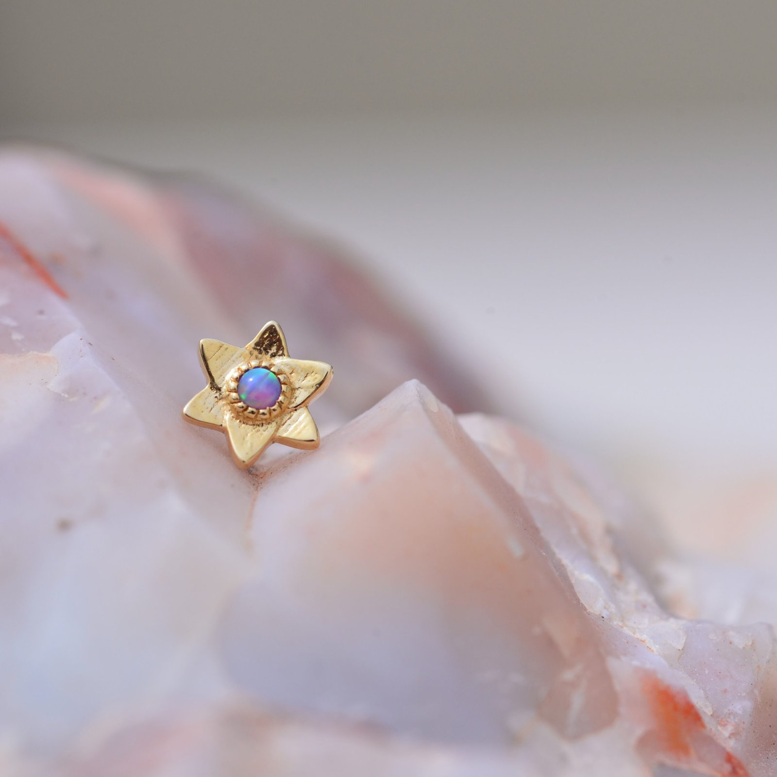 Flat Lotus Threadless 14k Solid Yellow Gold with 4.5mm Light Lavander Opal BVLA