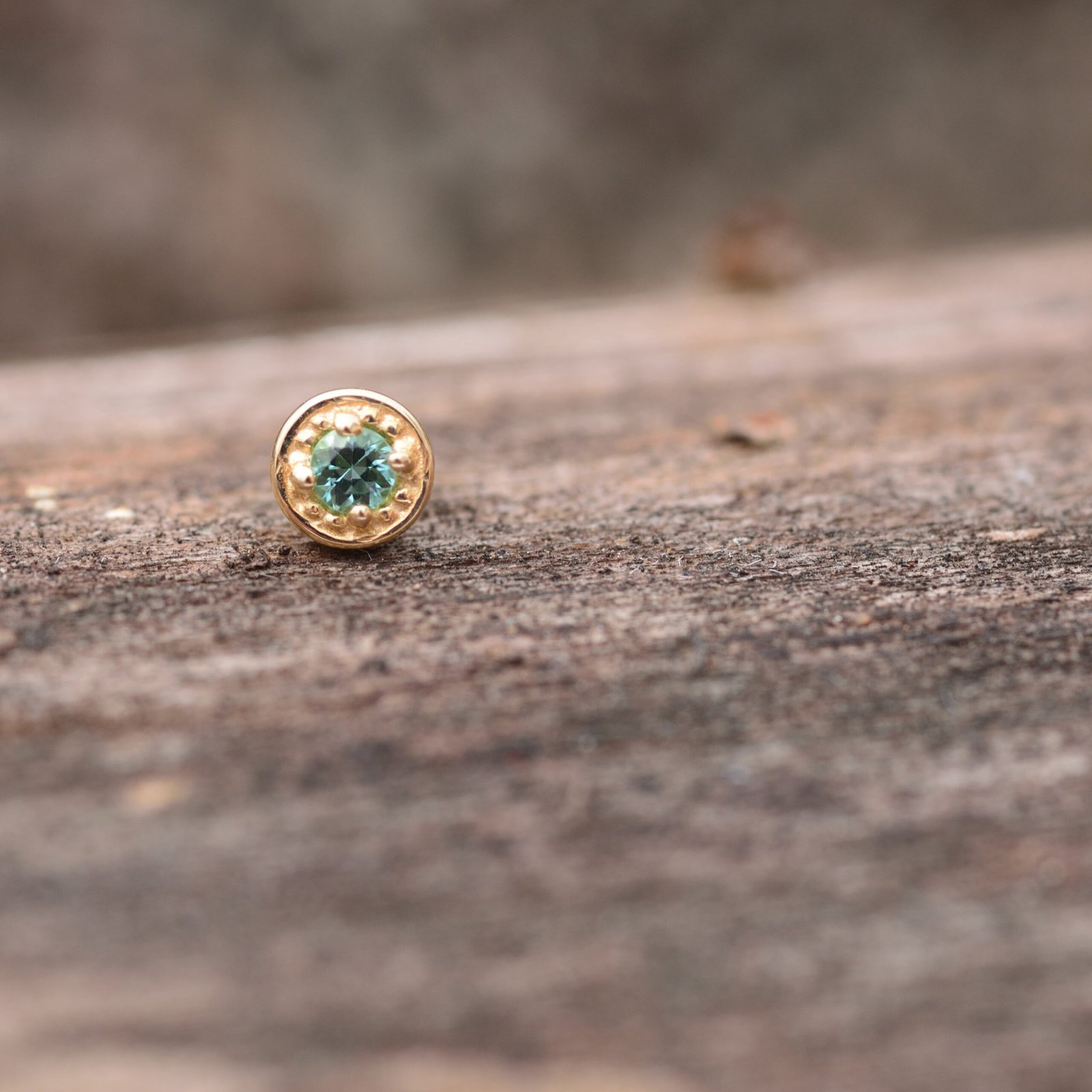 Threadless 4mm Millgrain Prong in 14k Solid Yellow Gold with Seafoam Tormaline