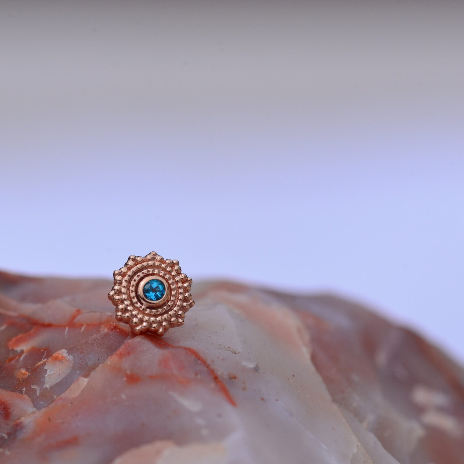 Round 6mm Afghan Threadless 14k Solid Rose Gold with Genuine Paraiba Topaz