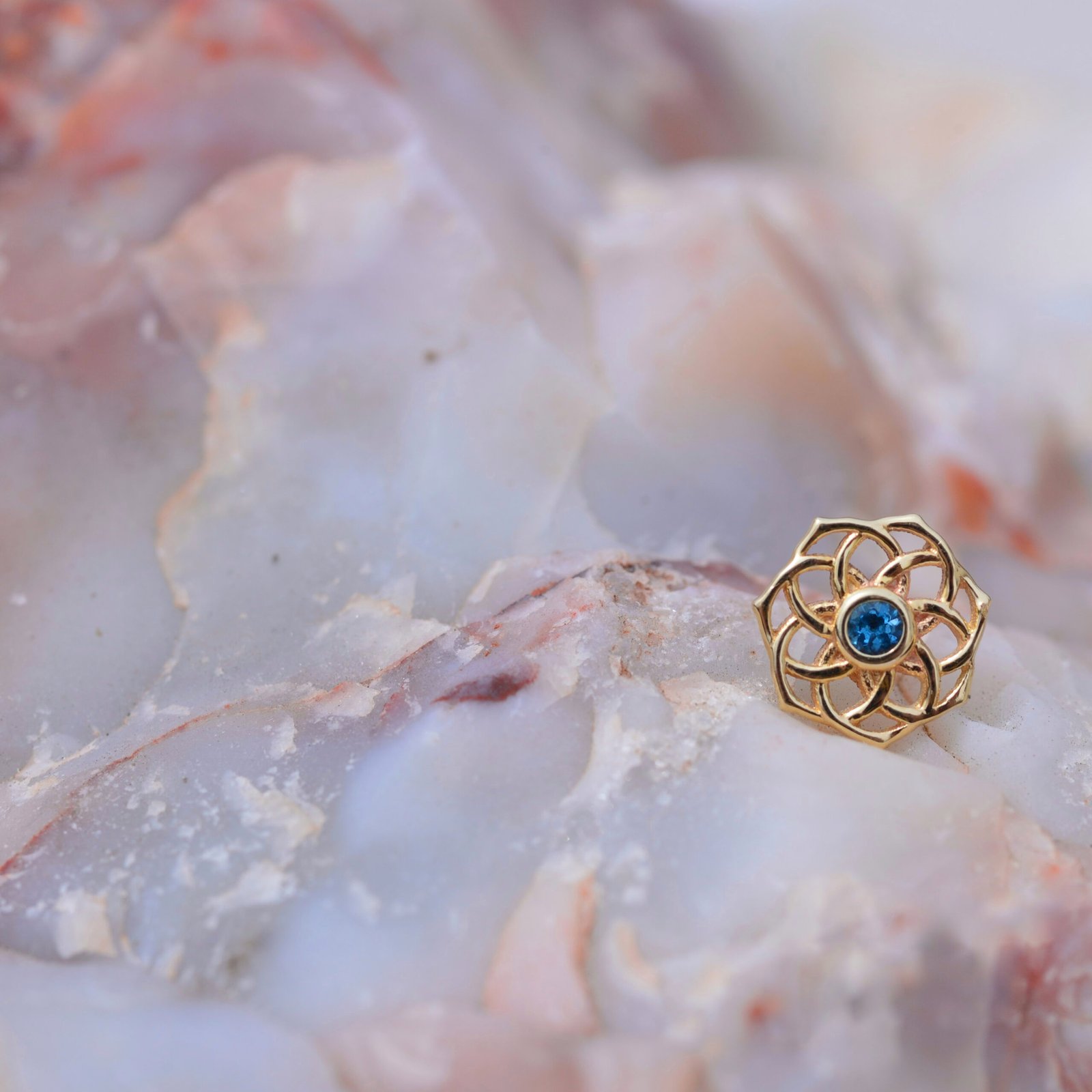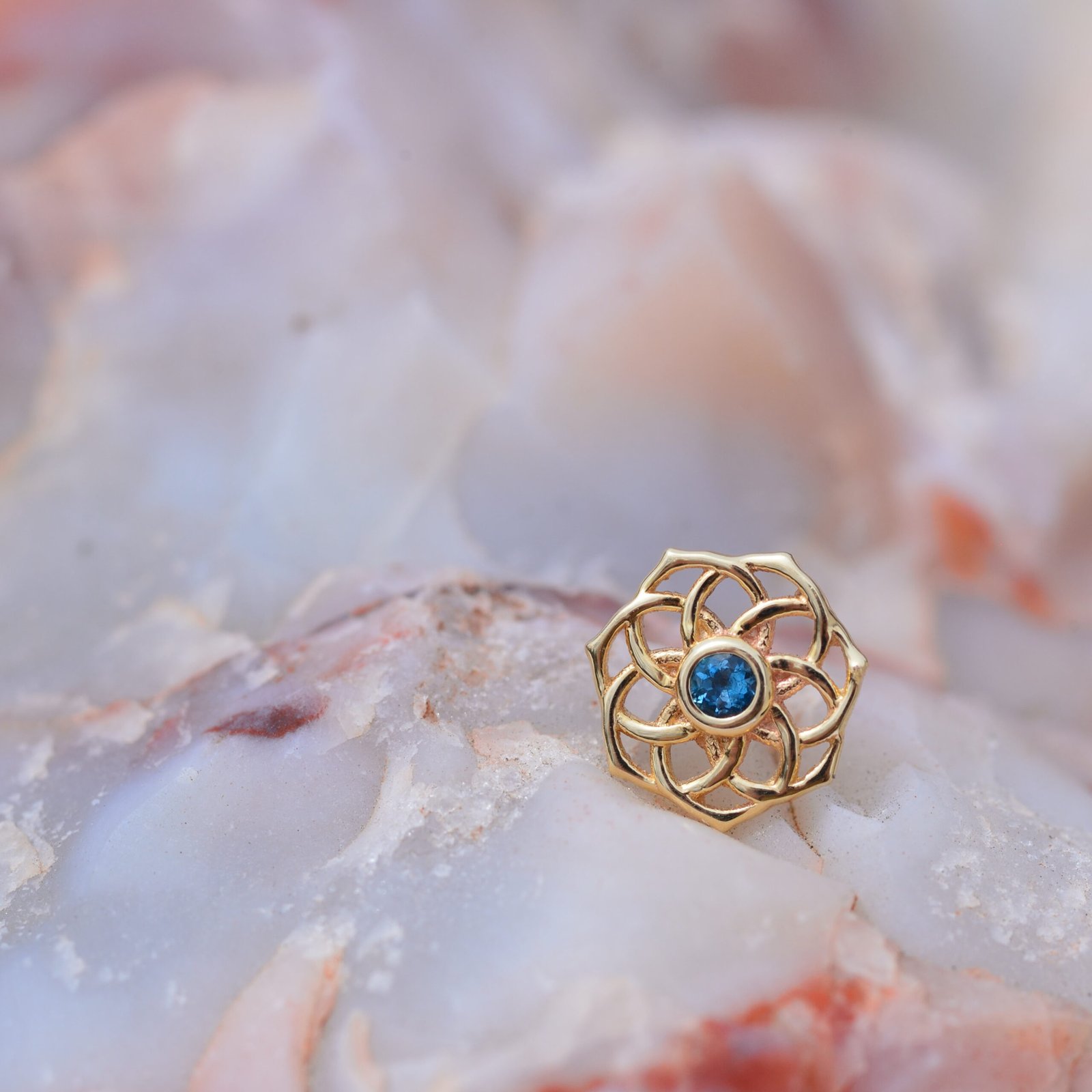 Threadless 14k Yellow Gold Shandra with London Blue Topaz 8.5mm w/ 2mm