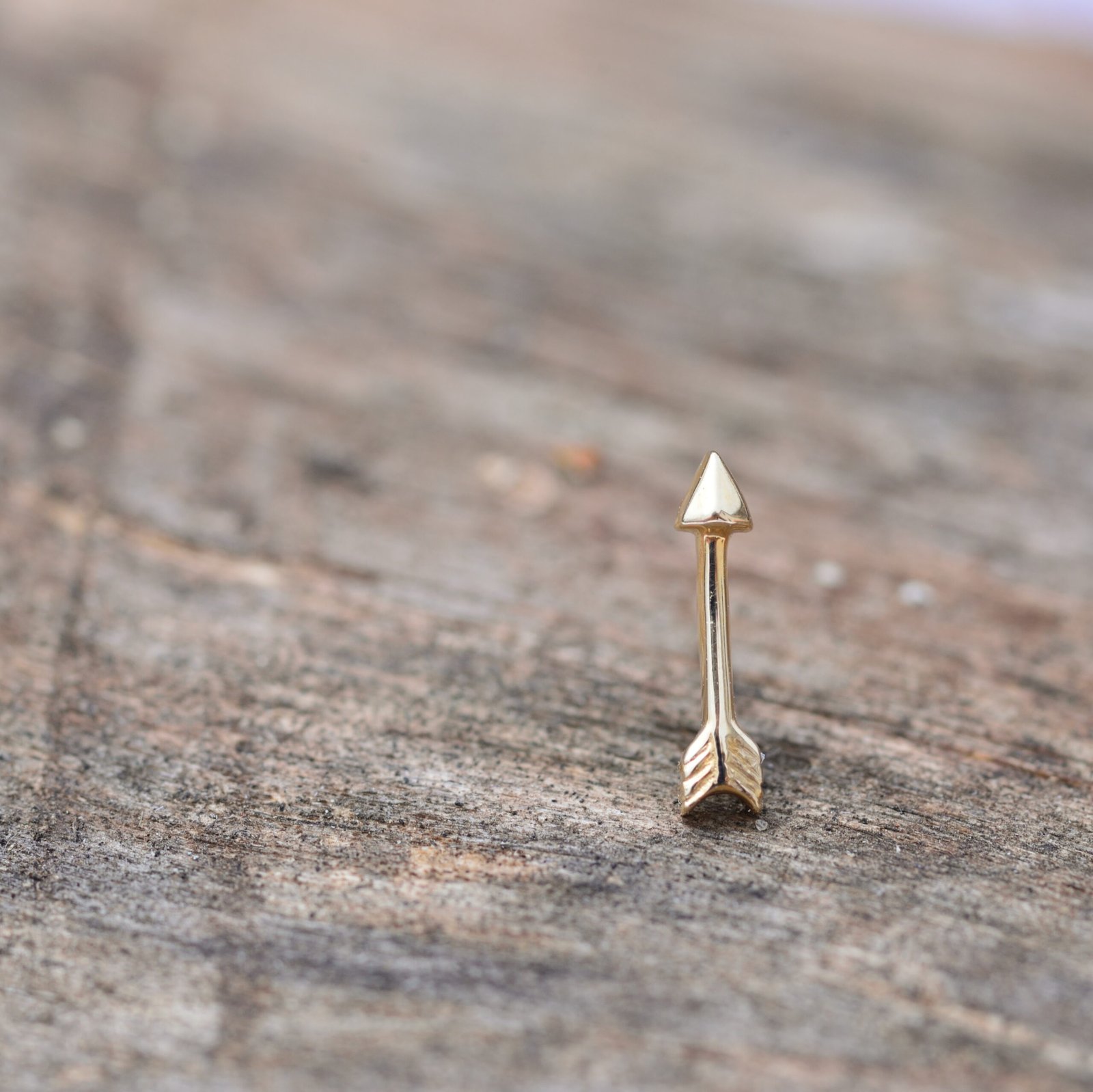 Threadless Tiny Arrow 14k Solid Yellow Gold