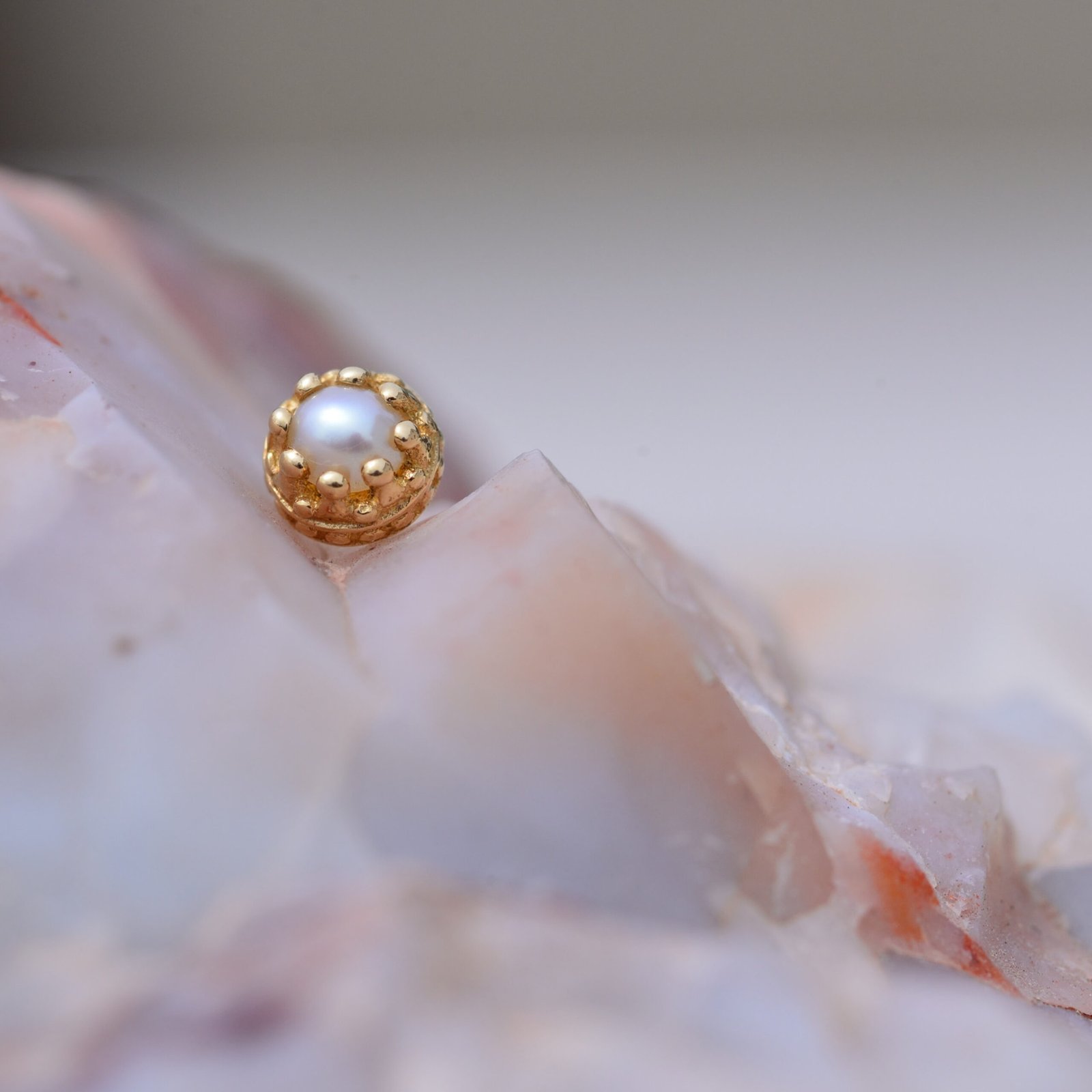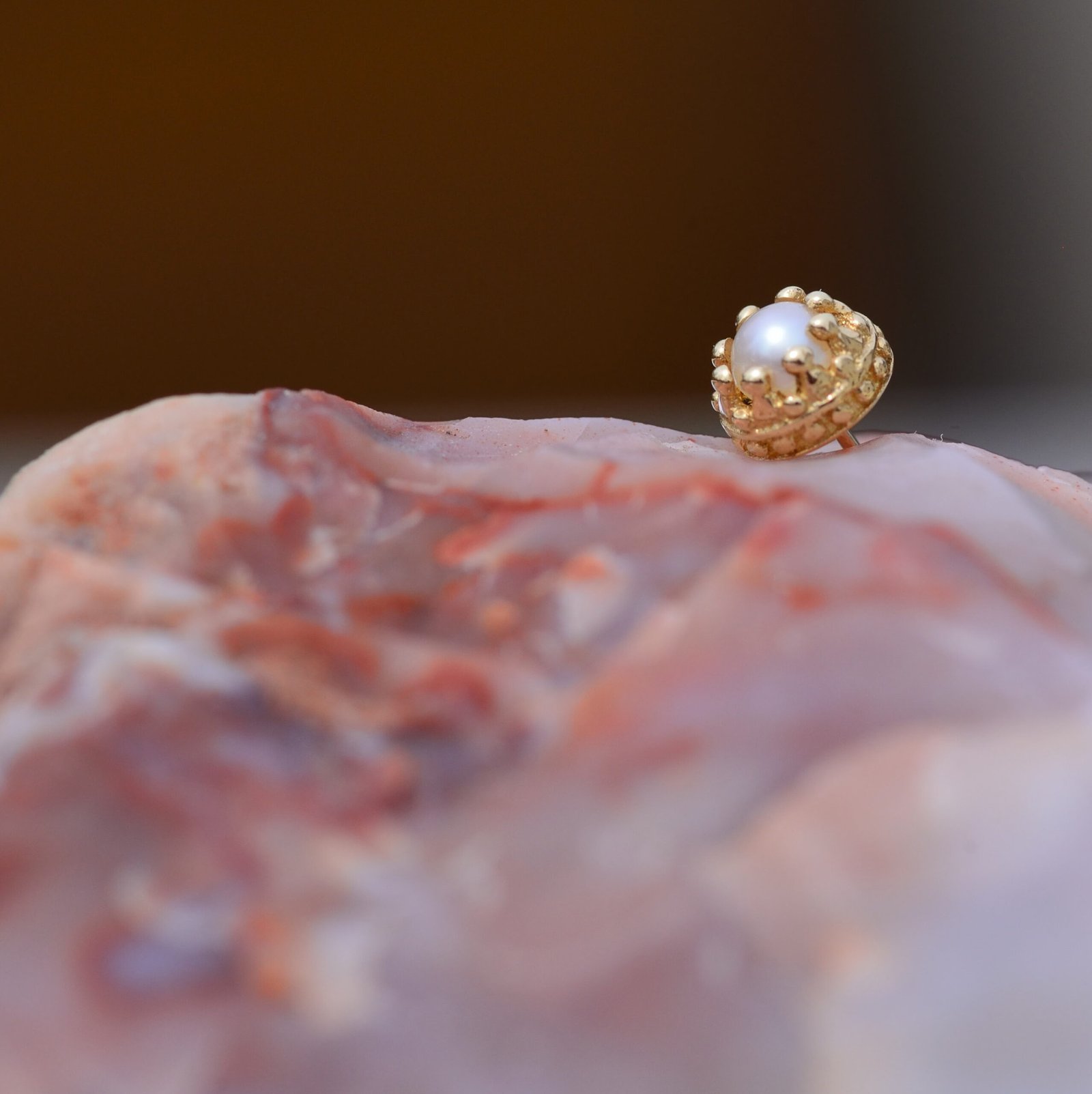 BVLA 14k Yellow Gold 6mm Threadless Crown with Genuine Half Pearl